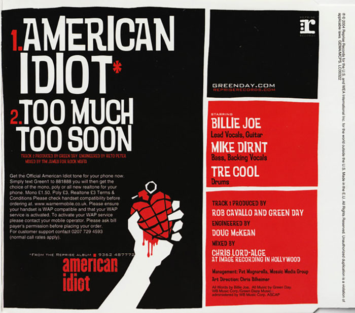 O álbum American Idiot também mostra fôlego contínuo no Reino Unido. A obra subiu para a 11ª posição no Official Rock and Metal Albums Chart, acumulando 924 semanas de presença.